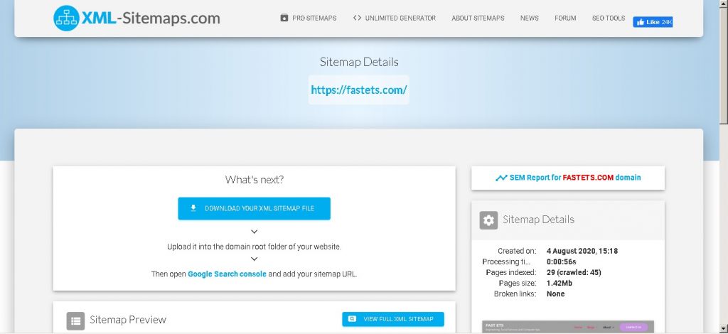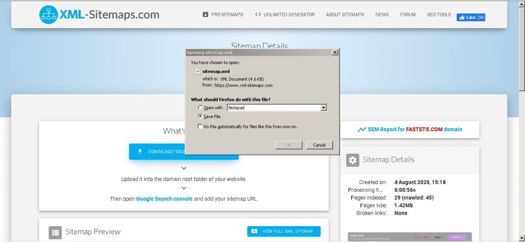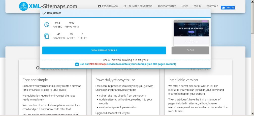 The Sitemap.xml is regenerated now press “VIEW SITE MAP DETAILS” to ba able to view or download the file.